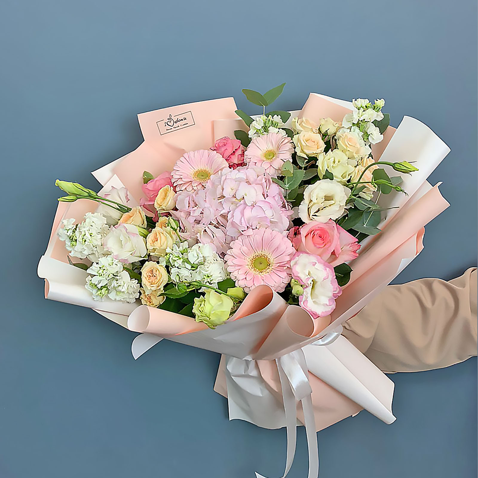 Букет с гортензией, матиолой и мини герберами арт. 71080