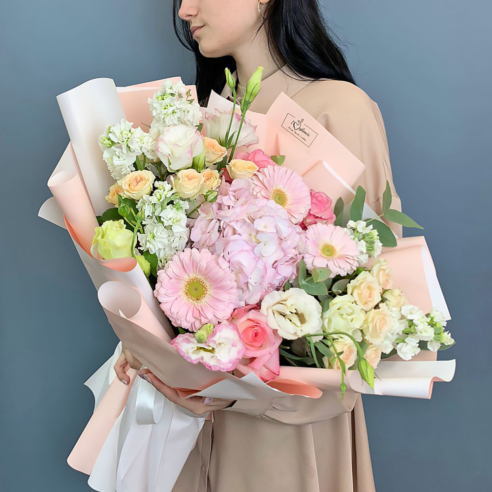 Такой большой букет легко представить в руках мамы, любимой, девушки, сестры или коллеги - он эффектно подсвечивает значимость момента и создаёт ощущение яркого события. Его выбирают для юбилея, важного праздника или просто тогда, когда хочется выразить свои чувства без слов. Цветы здесь собраны так, чтобы выглядеть нежно, но уверенно, сохраняя гармонию оттенков и фактур.
