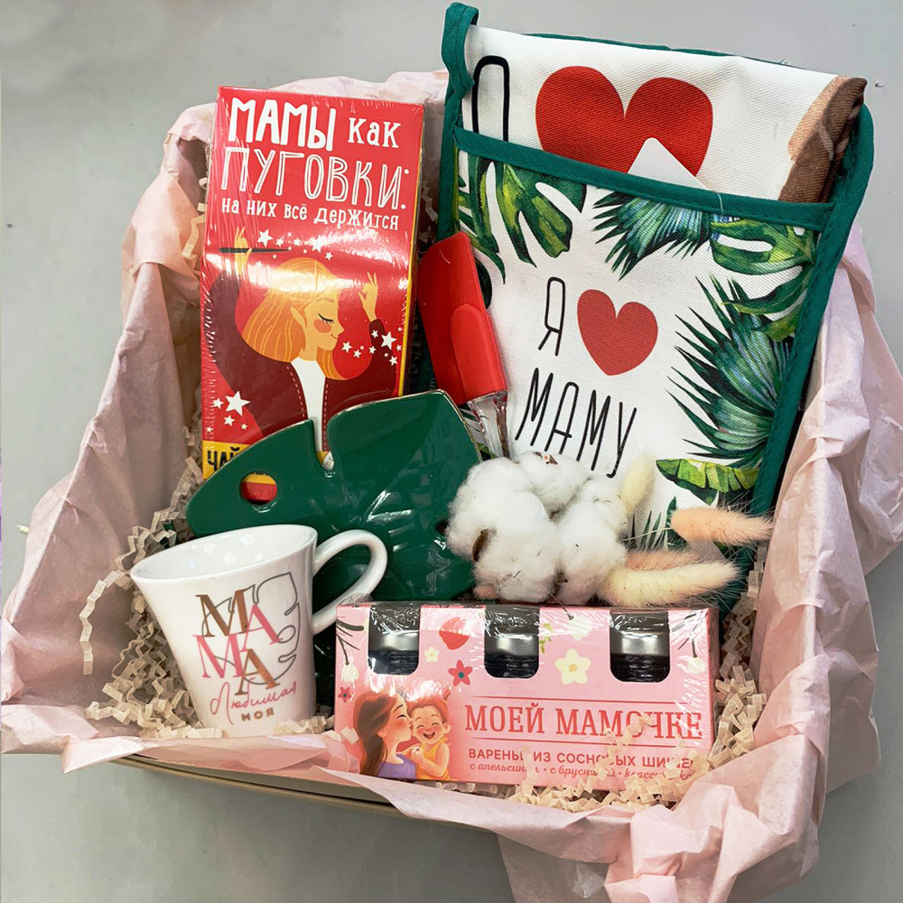 Подарочный набор "Любимой маме" чай, чашка, варенье, прихватка, полотенце арт. 67451
